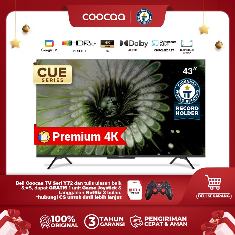 Coocaa Google TV seri CUE7600 ukuran 43 inch dengan banyak keunggulan yang membuat pengalaman menonton di rumah serasa di bioskop: